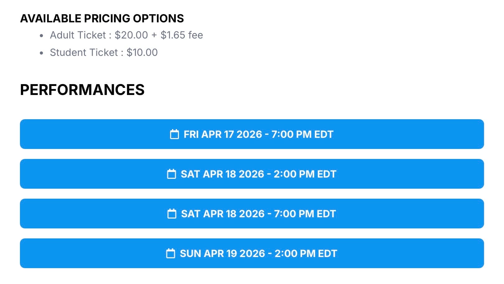 Last time I suggested six unpaid performances, and one pay-what-works performance for a school with an incredibly slim theater program. It looks like selling tickets to a non-musical is not an easy feat, even for an established theater department with a capable fundraising wing. 80 seats is a great size for a theater performance — it forces actors to drop into their heads. The distractions are only a few feet away, and there are not enough lights to blind you. Black boxes are boot camp. Maybe you can only fill one house for a Death of a Salesman. This student show has only one date listed.