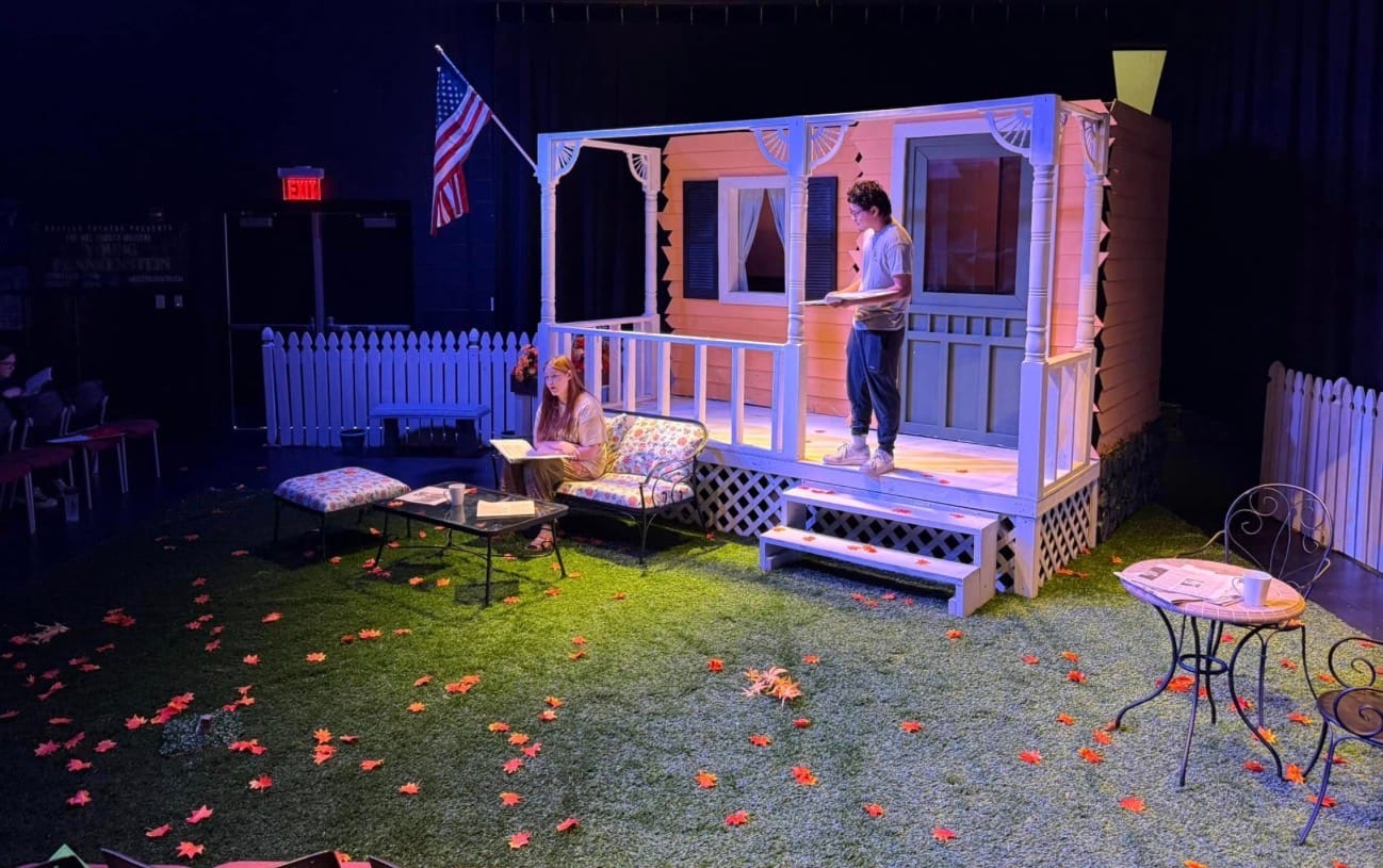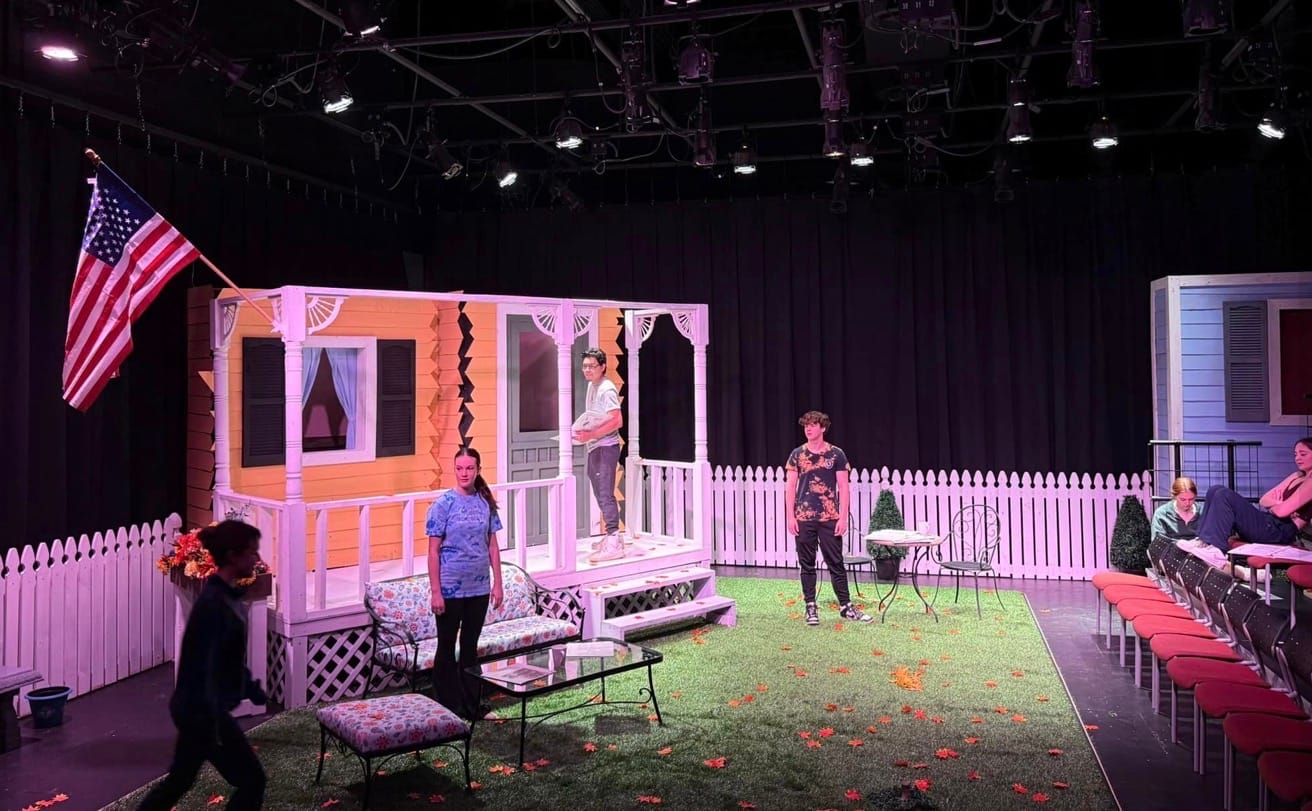 This high school set is better that the set a local professional company put together for a similar single-location family drama set in the 1940’s. That other set was less than wonderful because they cobbled it together from whatever was available in stock. I think this school did the same — they just have a better stock. And, this school has “free” labor in the form of volunteers, salaried staff and students. Small professional companies have to “pay” for most of their labor; hence, the wobbly doors and overworked fee-based set designers.