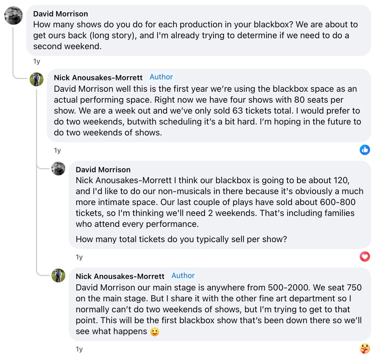 But all of that work for one performance! I’m shaking my head no, big time. Black boxes are boot camp, and we all get better with a few runs under our belts. Mom and the cousins can all come twice, sit on opposite sides, get a different show both times.