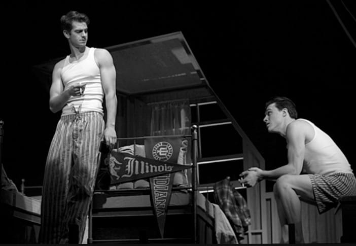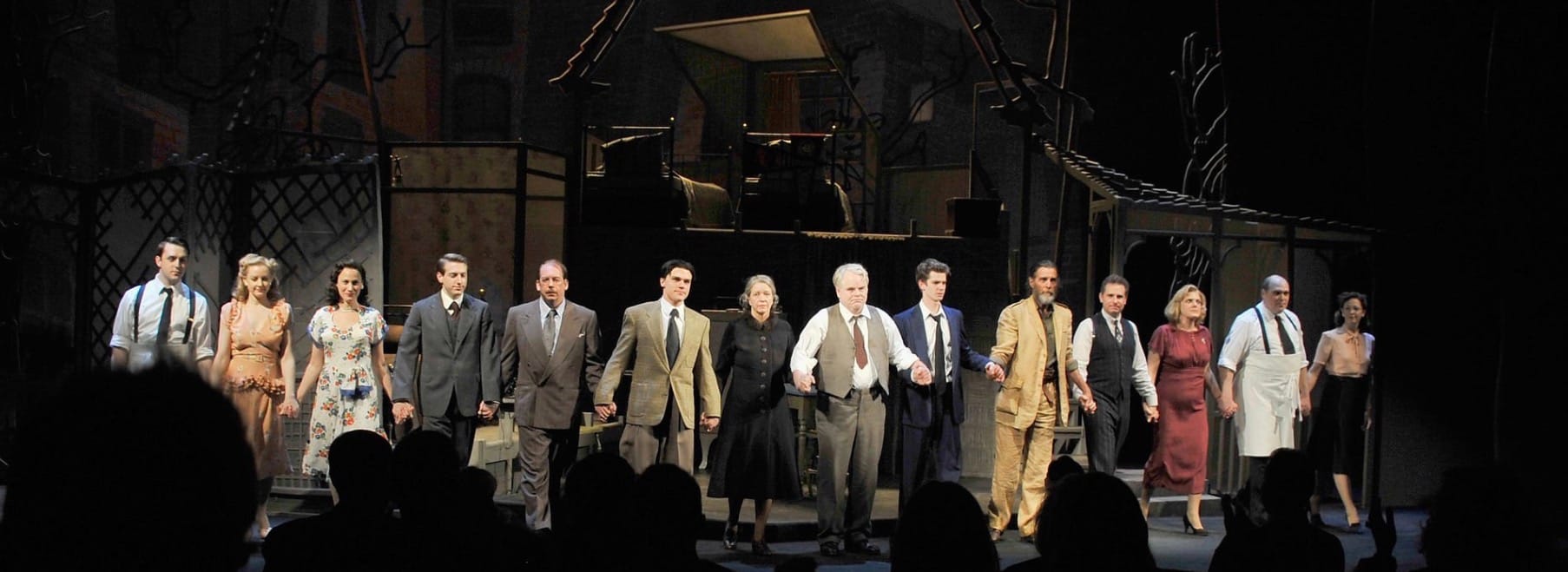 Hmmm…this is our most iconic play and this is our most iconic image…it skews simultaneously goofy and heavy. I guess Americans of the US kind are a bit of a farce to some (most) of the world. I thought that original production would be a little like my production — a little sitcomical. But I’m seeing seriousness despite those high peaks of the set and the artificiality of the backdrops.