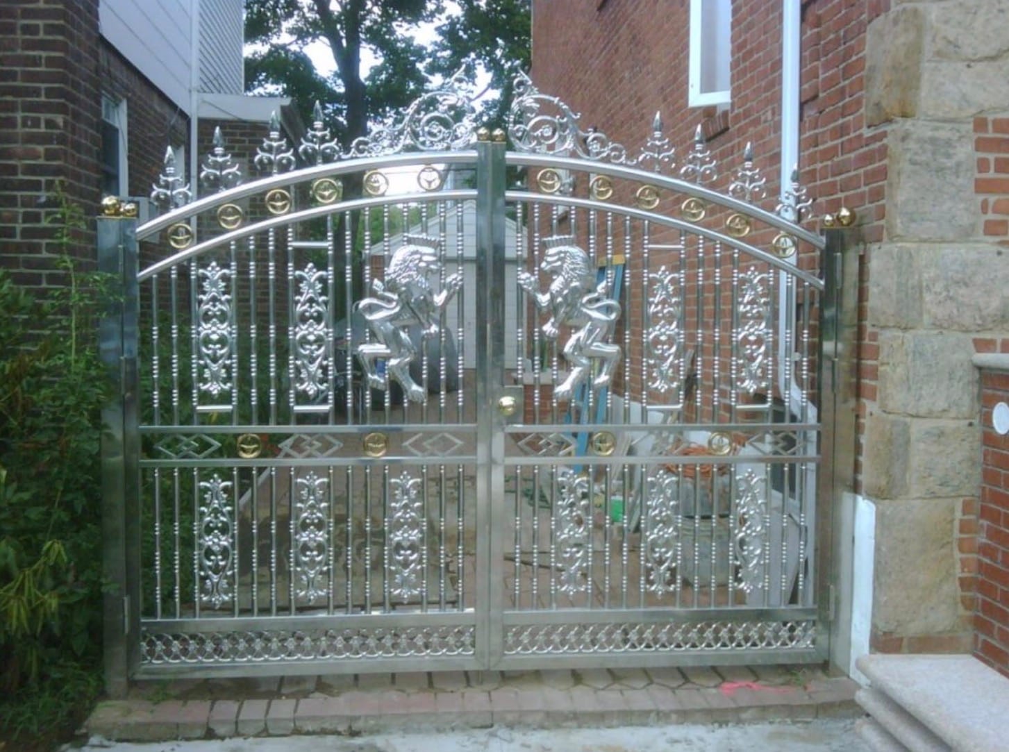 With no mention of gates, the Times has the guy in the photo above explain his $2,300 protective and princely polished portal to his Everyman home: “my parents never drove a good car and I drive a Mercedes.”