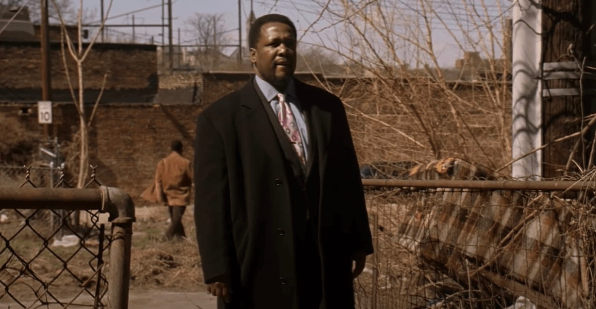 So, that’s Wendell Pierce as Bunk Moreland on HBO’s The Wire. He plays a detective, hence his landscapes tend to be the harder living parts of Baltimore.