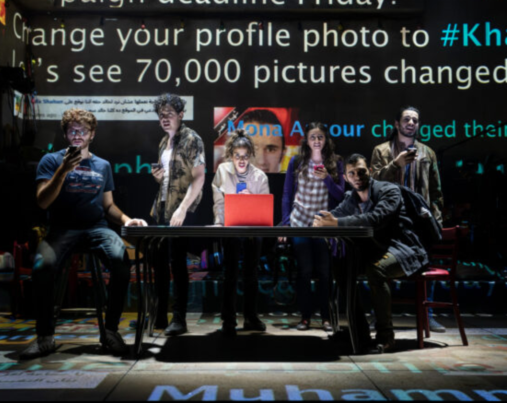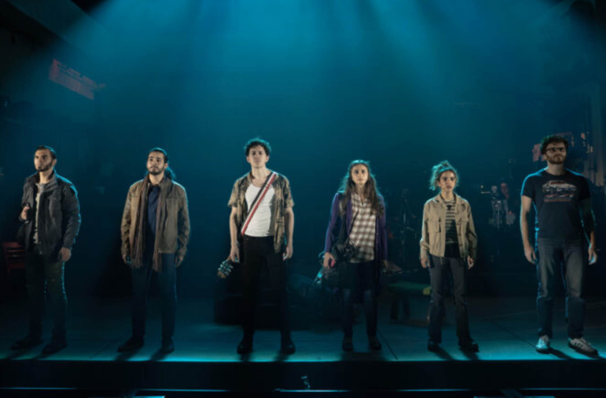 You can spot the brick wall at the back of the set in this musical. So, Rent bricks in Cairo. But that was it for the physical moments of New York Theater Workshop history that I could see.