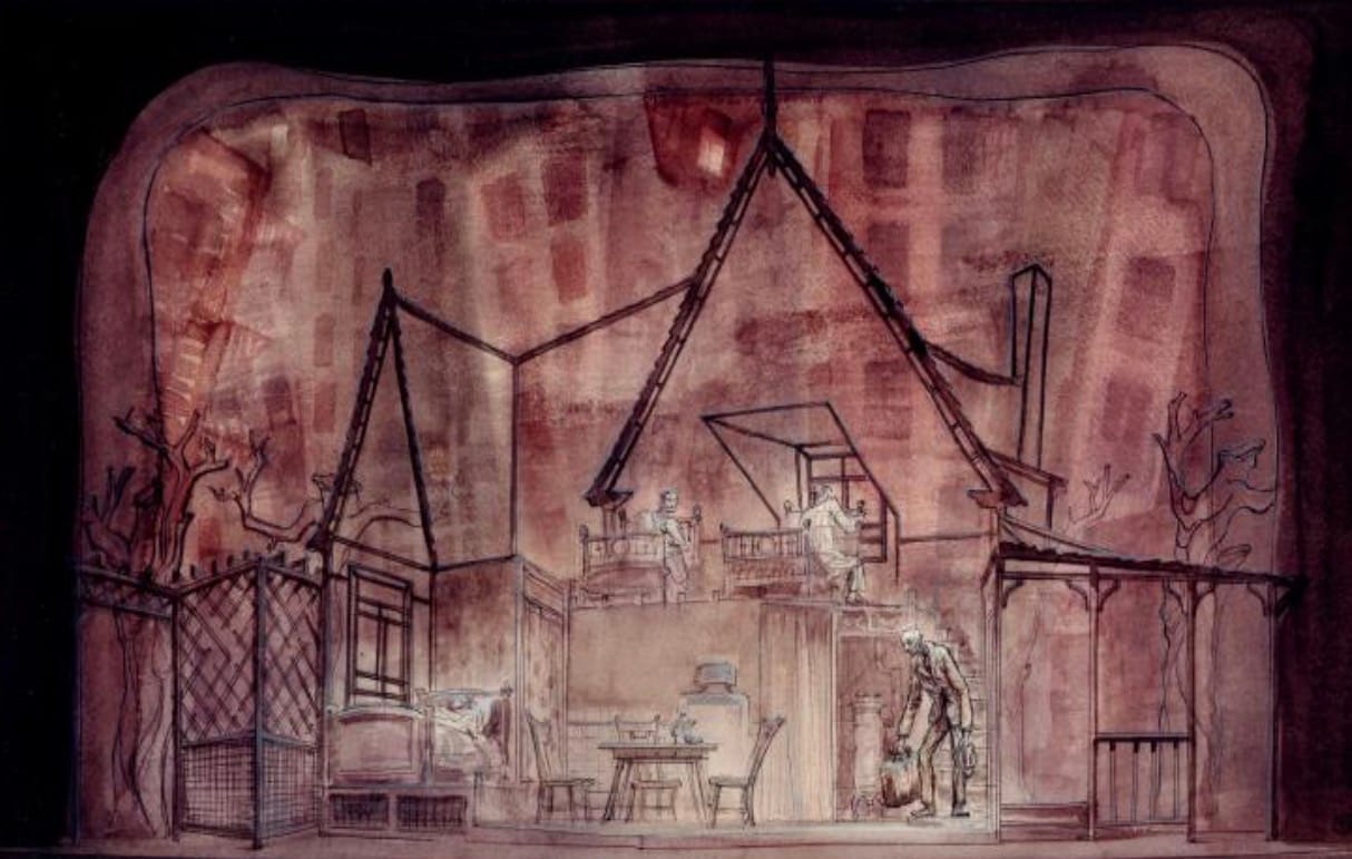 This is a different play, but that is definitely still Willy. This sketch is by Ming Cho Lee, the set designer and Yale design department head who was American theater’s main mentor for 50 years. We call that figure above a ”Ming Man”, but really it was a Willy. Ming drew Willy into every American show. He saw Willy everywhere, and made him the hero of every show.