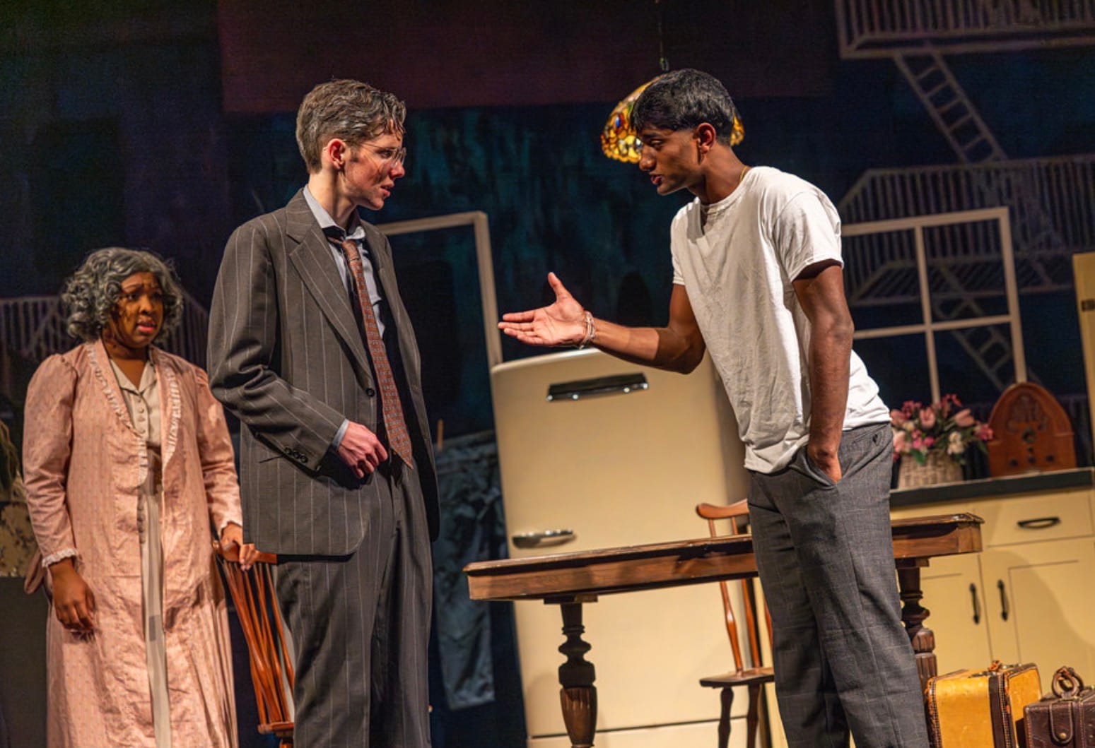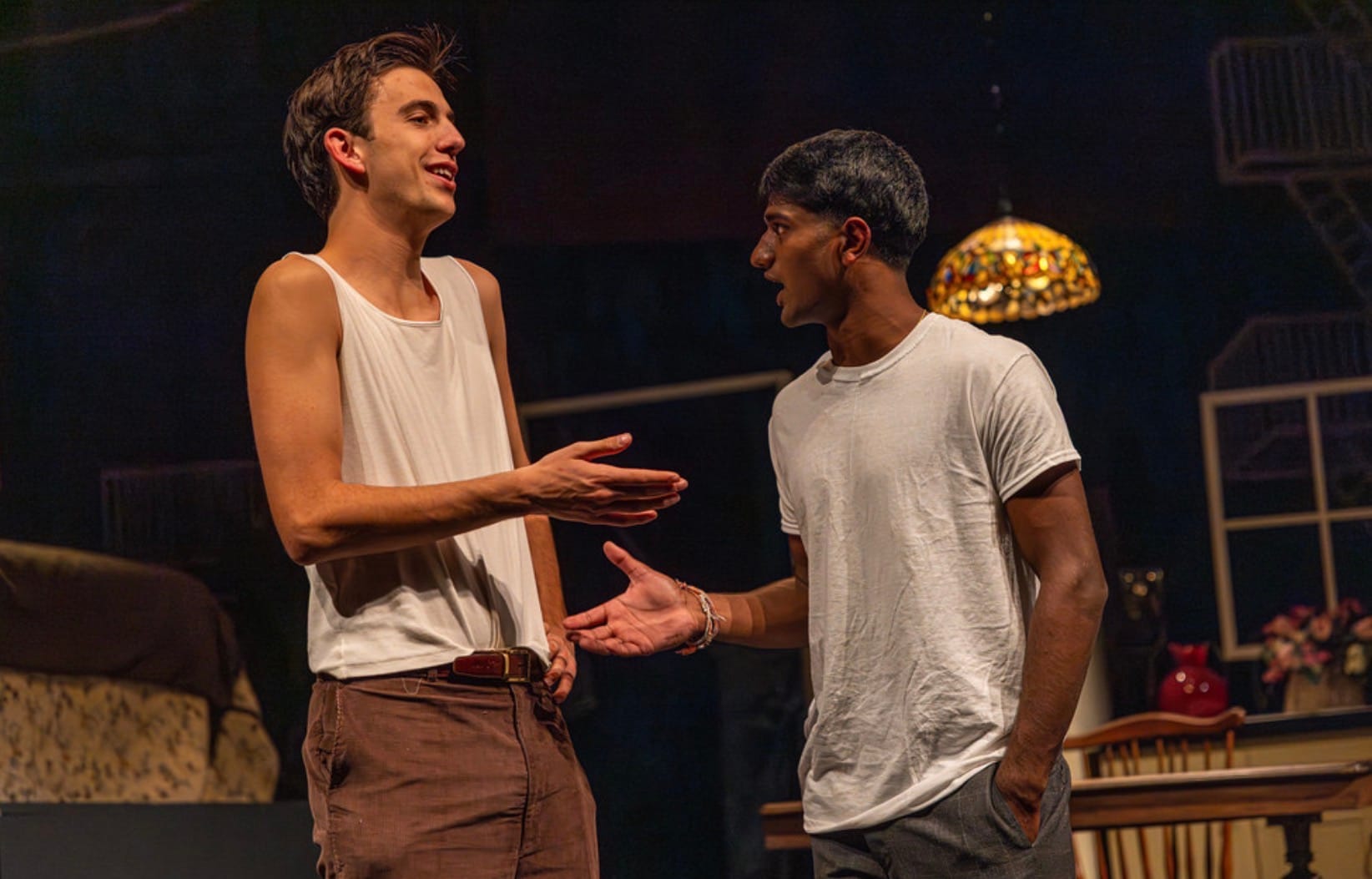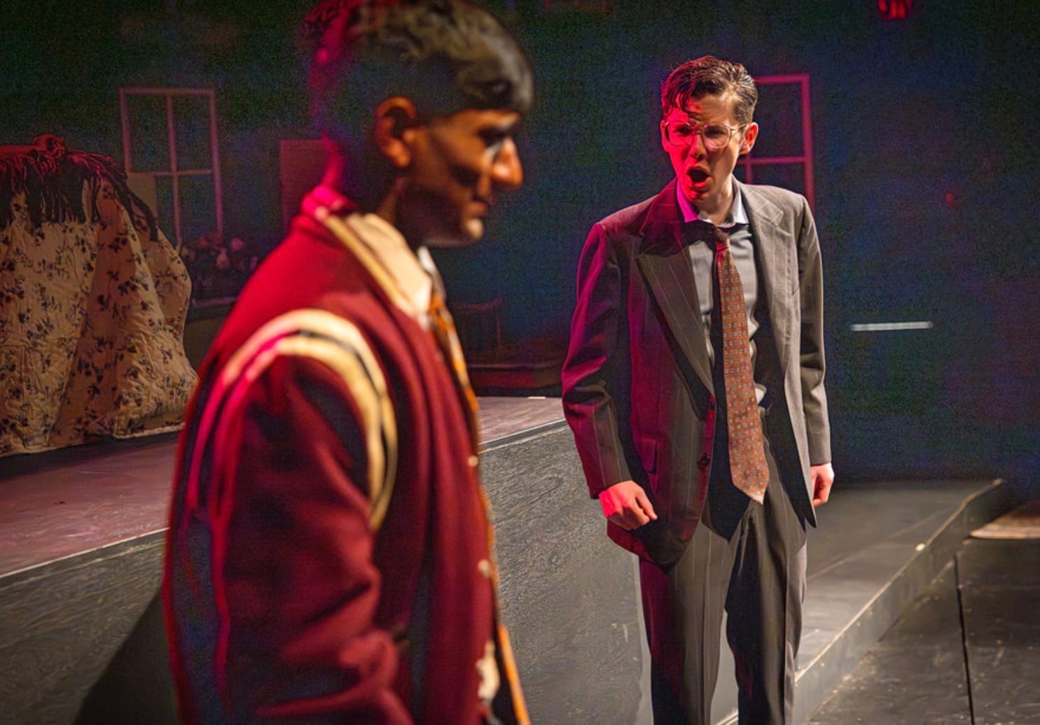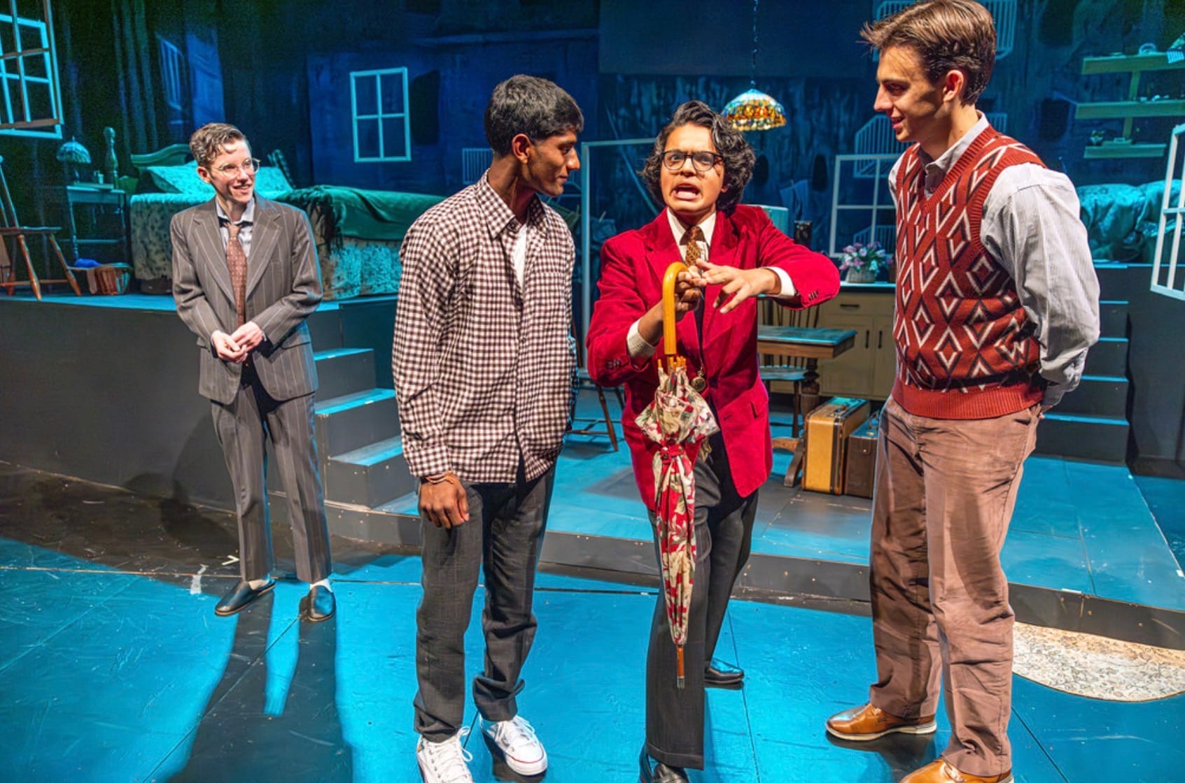 This is Roxbury Latin’s December production. It’s an all-boys private school in Boston. In the flashbacks, the sons are supposed to be the same age as these actors. Usually, you hire 20-something’s to play the sons, and then they stretch in the other direction. I like this version better. This Willy looks like the Willy of the original set sketches. It is nice to see Willy in a body that reminds us that he had hopes when he was young.